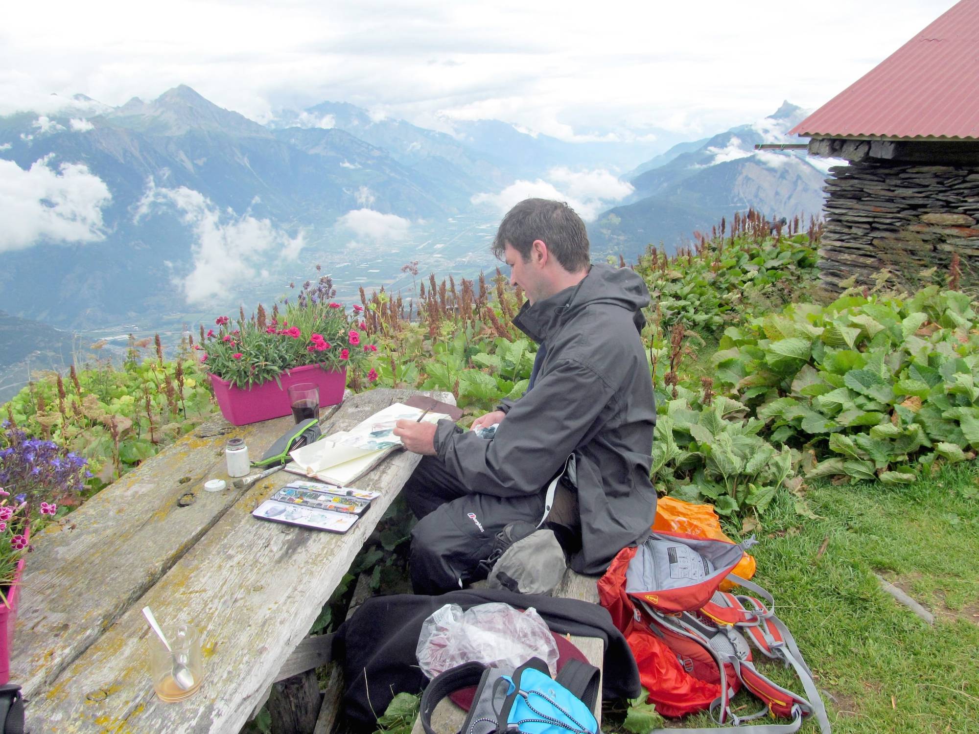 The Artist sketching in Switzerland on the Tour Du Mont Blanc Circuit