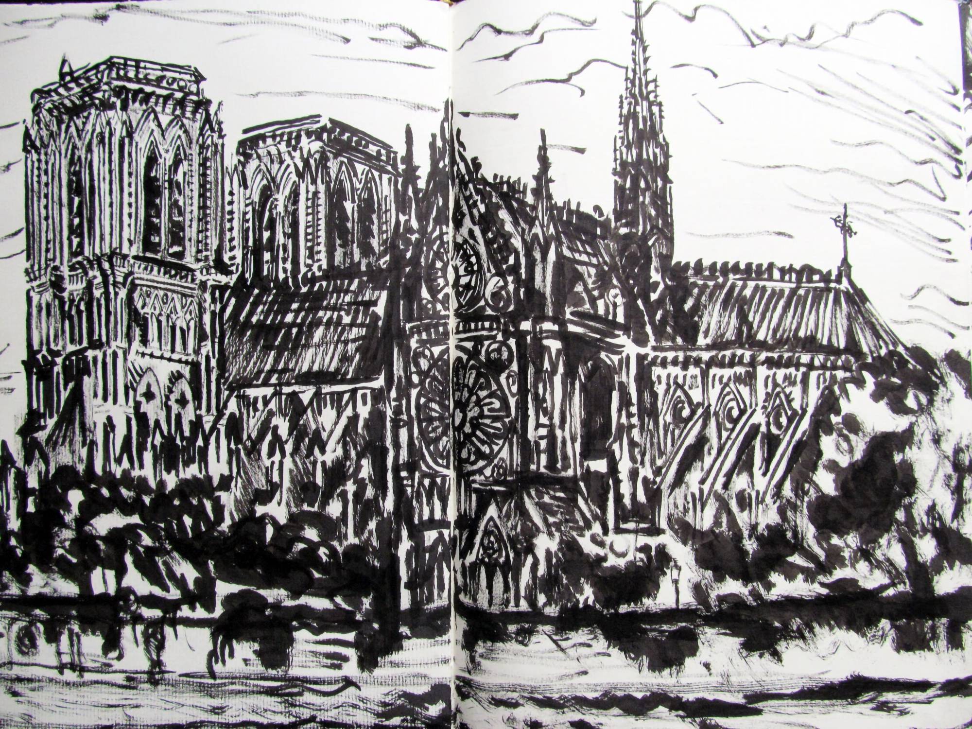 Art Works Previous work Next work Sketchbook study of Notre Dame Cathedral Paris Pen & Ink 35 x 51 cms (13.78 x 20.08 ins) Ref: 682125 Enquire about this item Share: