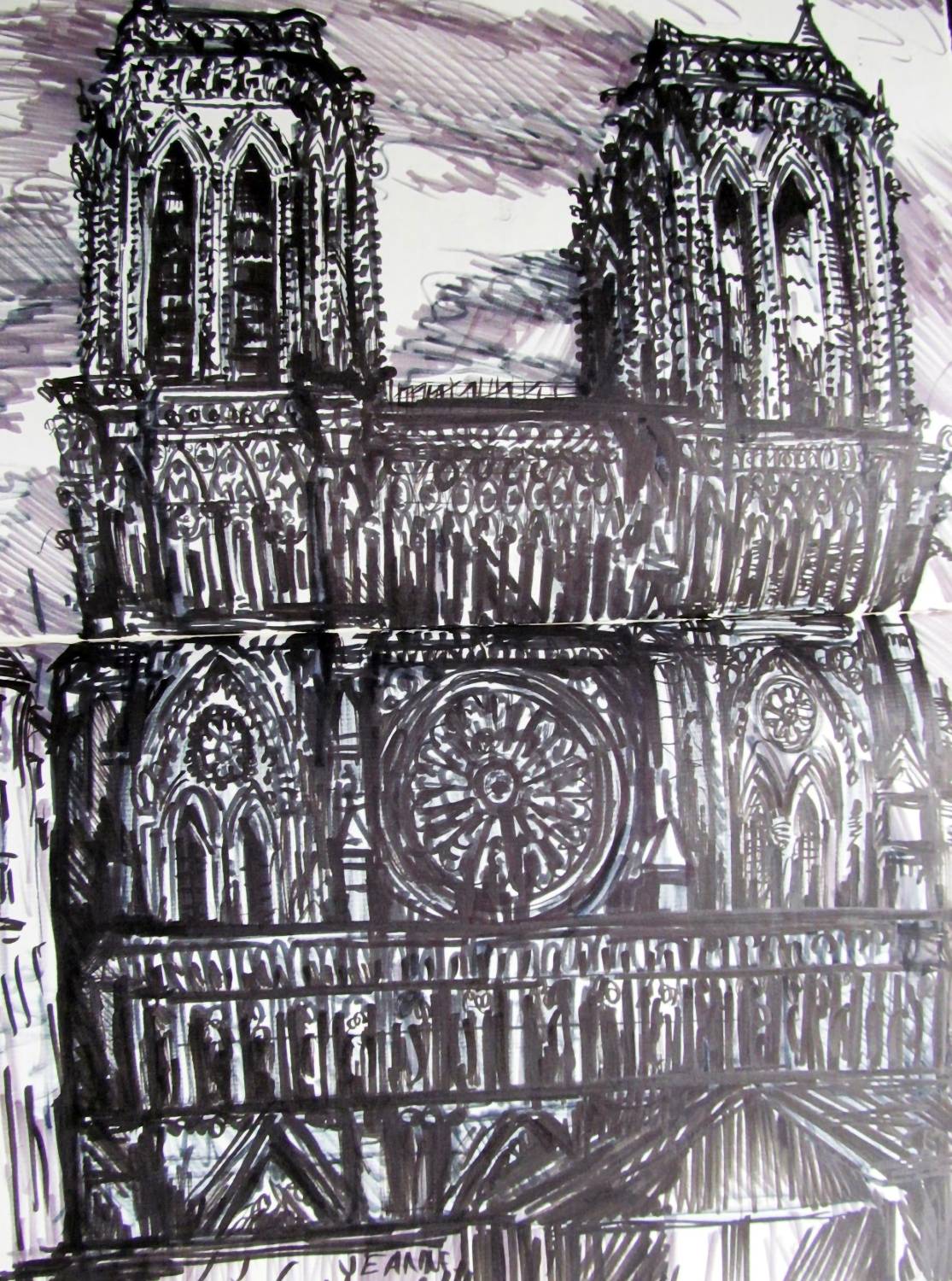Art Works Previous work Next work Sketchbook drawing of the facade of Notre Dame, Paris Paris Pen & Ink 51 x 35 cms (20.08 x 13.78 ins) Ref: 682129 Enquire about this item Share: