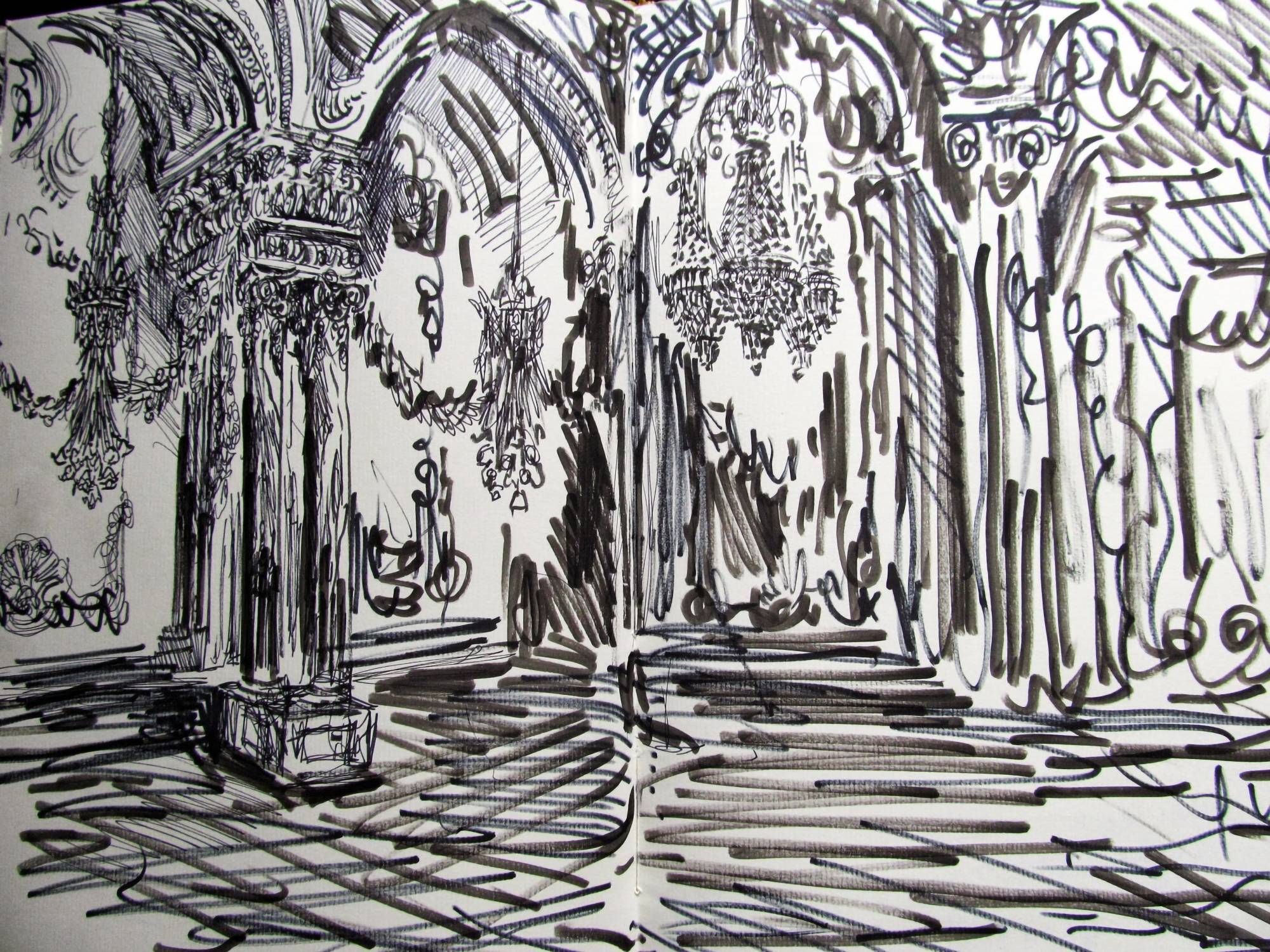 Art Works Previous work Next work Sketchbook drawing of the ballroom in the Musee d'Orsay, Paris Paris Pen & Ink 35 x 51 cms (13.78 x 20.08 ins) Ref: 682139 Enquire about this item Share: