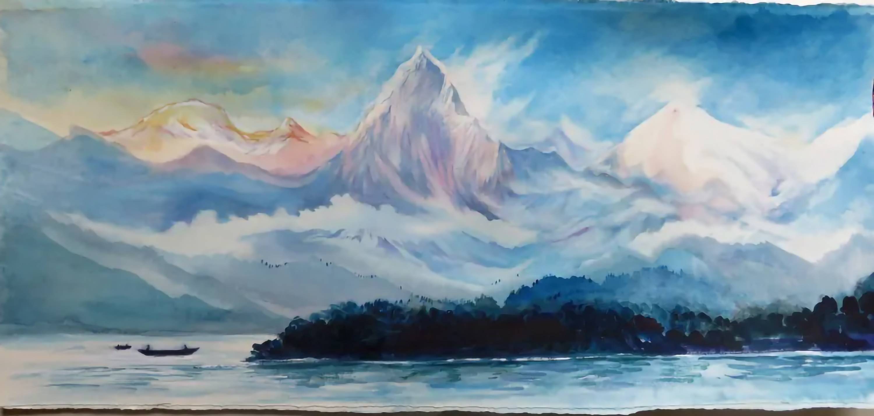 Art Works Previous work Next work The Annapurnas from Phewa Lake at Pokhara Nepal Nepal Watercolour 30 x 76 cms (11.81 x 29.92 ins) Ref: 683199 Enquire about this item Share: